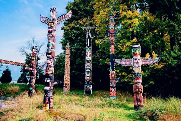 图腾公园,竖立着高耸图腾柱,彰显印地安文化的影响力,最能吸引游客驻足。