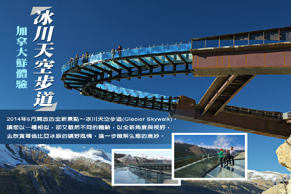 注:冰川天空步道如遇天候因素或特殊状况,而导致无法开放时,则每人退$25加币,敬请见谅!